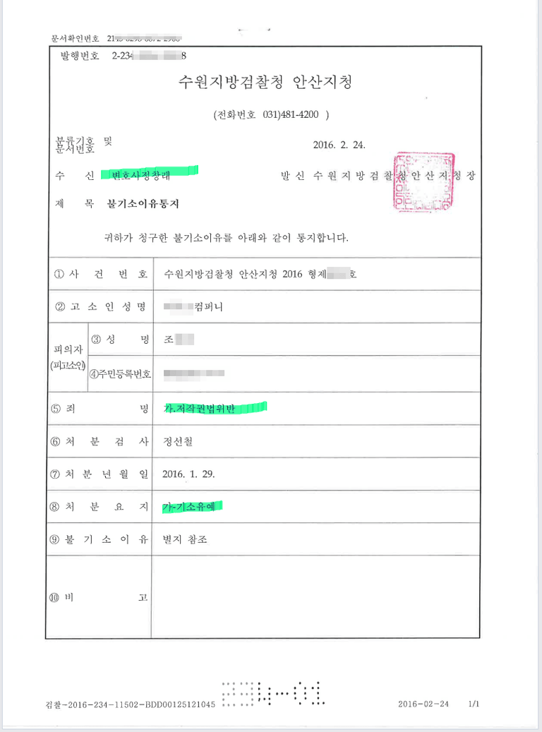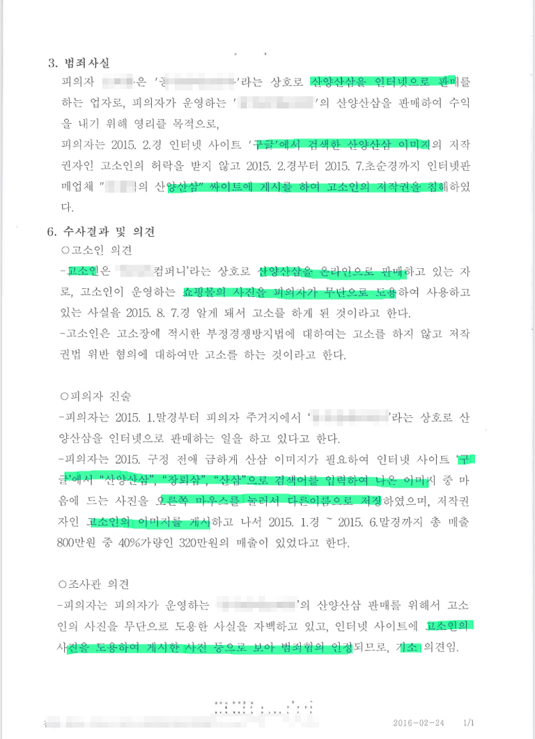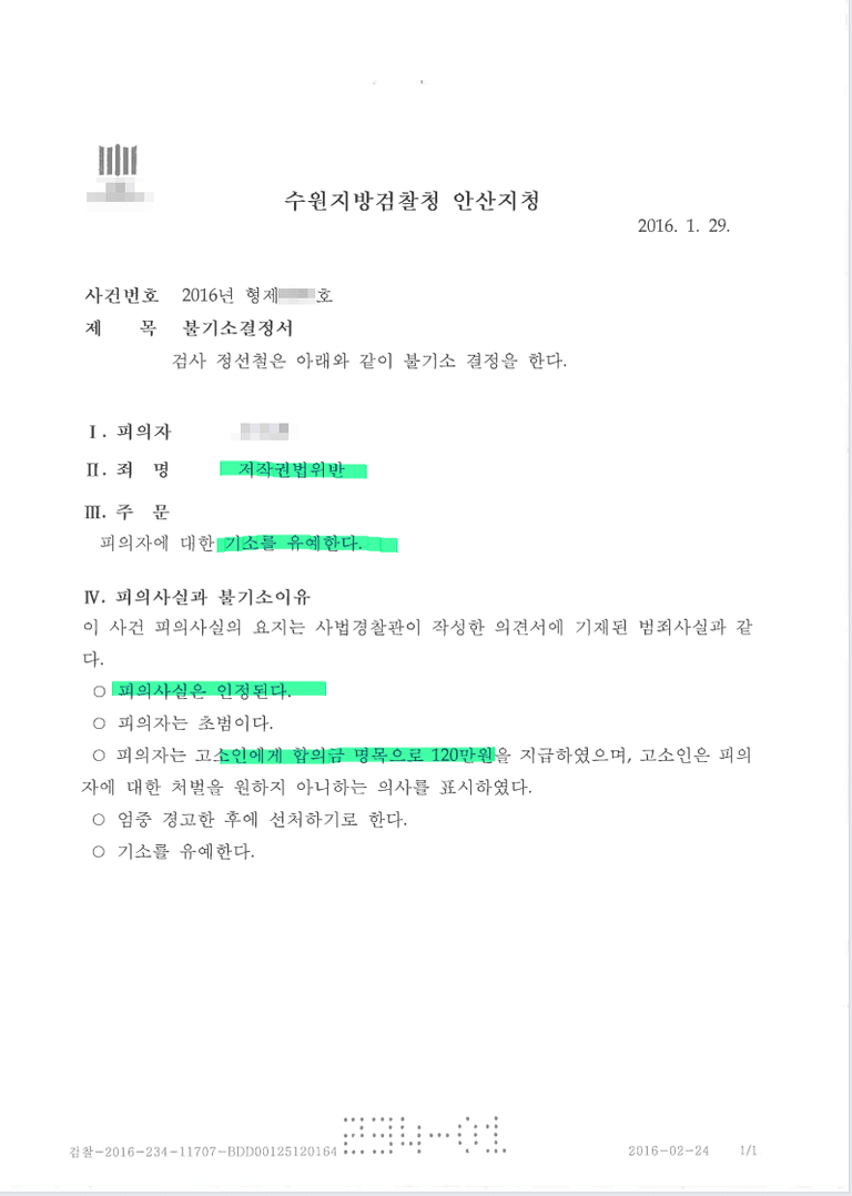 저작권법 위반으로 고소한 후 120만원의 합의금을 받아낸 사례