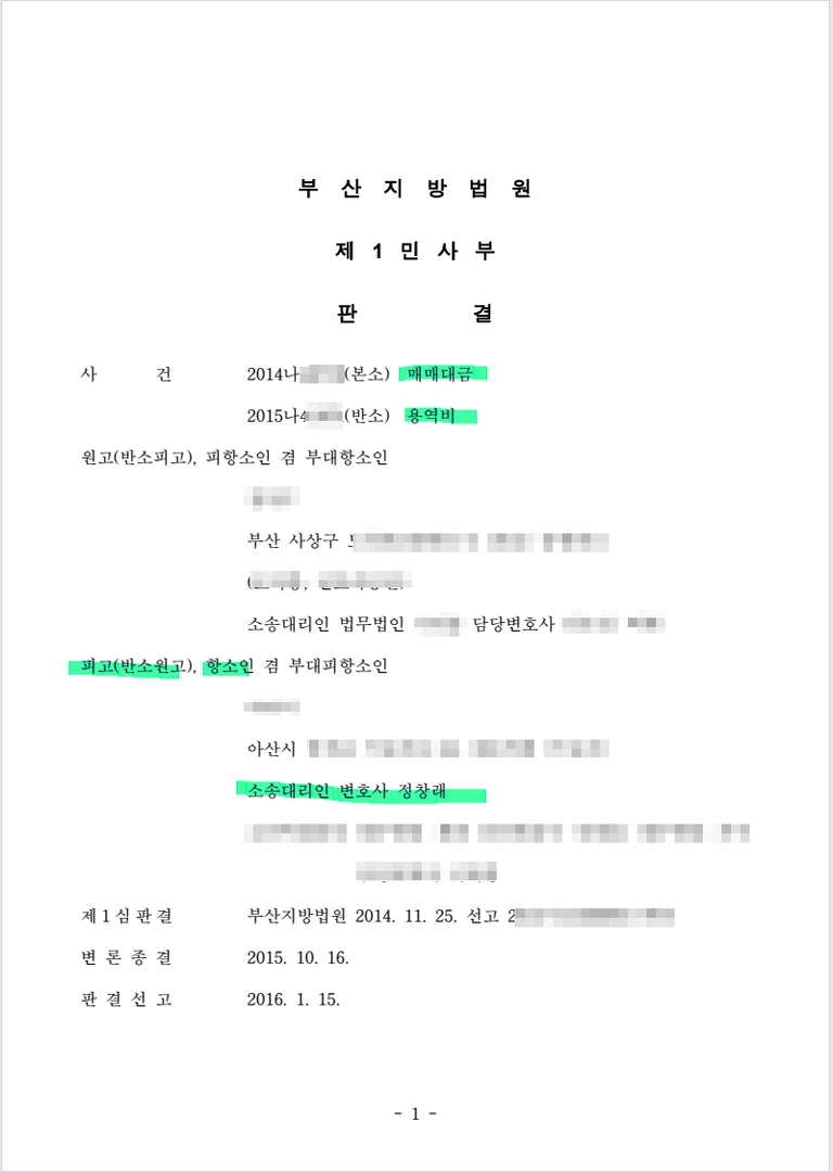 1심에서는 피고 혼자 소송을 진행하여 패소하여