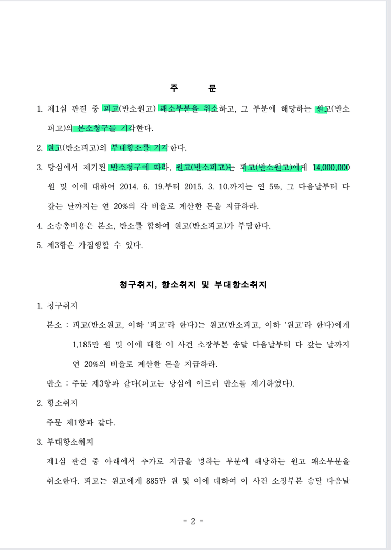 소송비용 또한 1심 2심 모두 원고의 부담으로 하라고 판결받았음