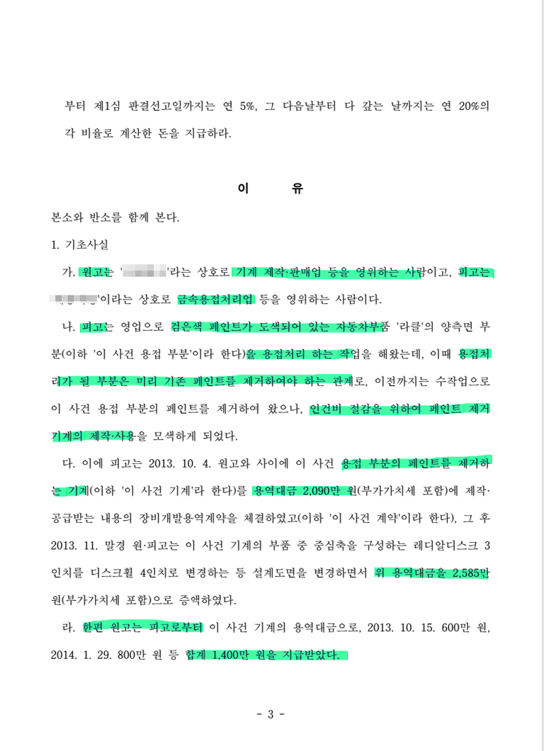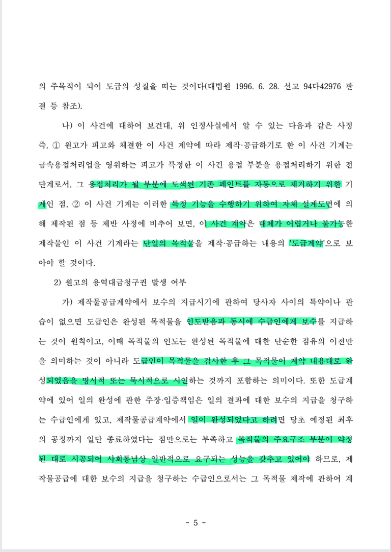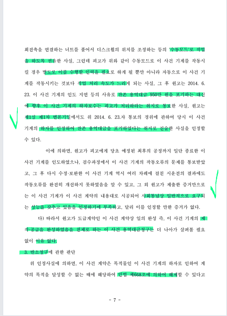 기지급한 기계대금만 제외하고 나머지 대금을 다 지급하라고 판결되었음