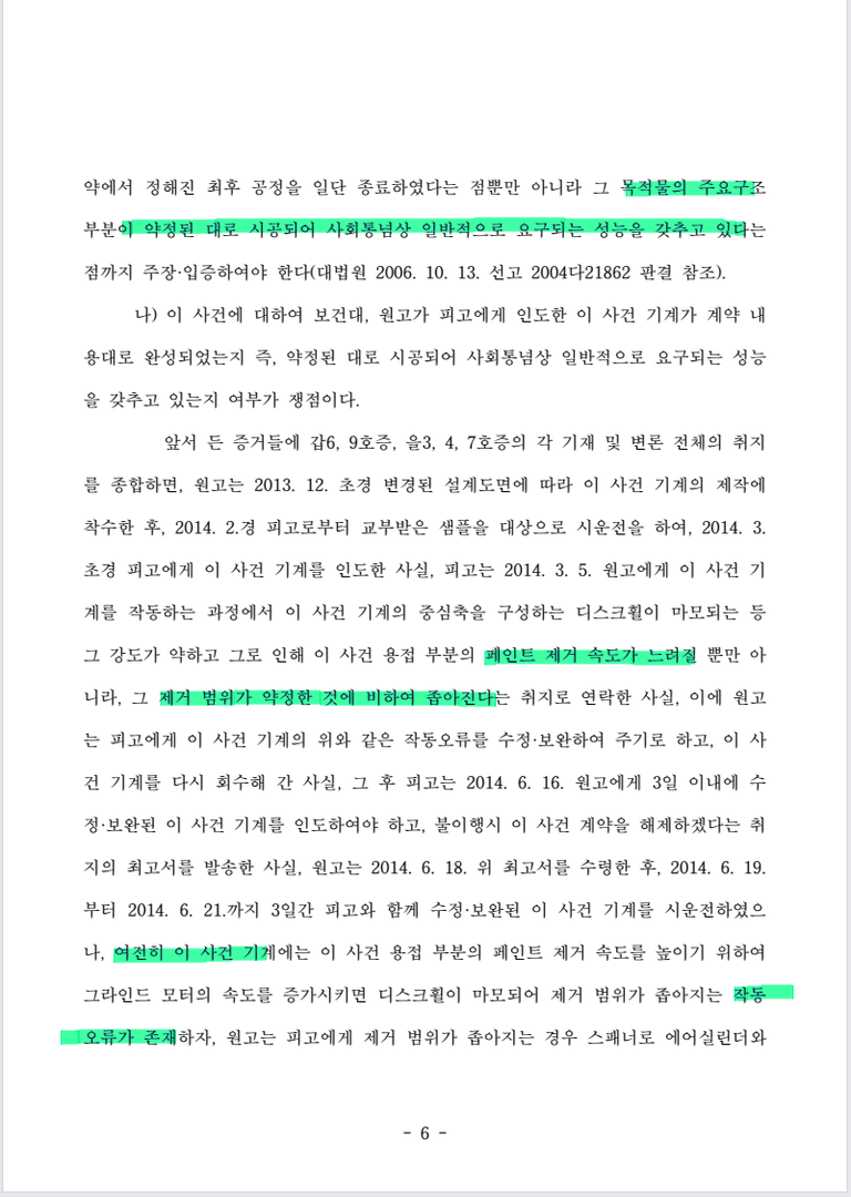 일단 인도받은 기계가 하자가 있어 작업속도가 느리고 페인트제거도 제대로 되지 않은 상태라