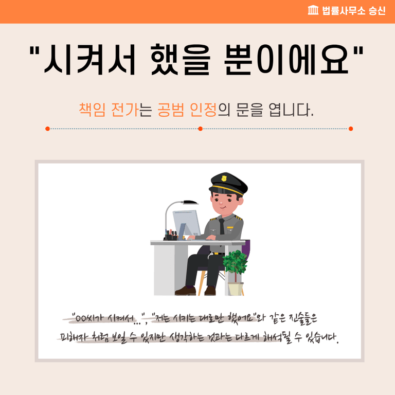 3. 책임 전가는 감형이 아니라 공범 인정의 문이 됩니다.