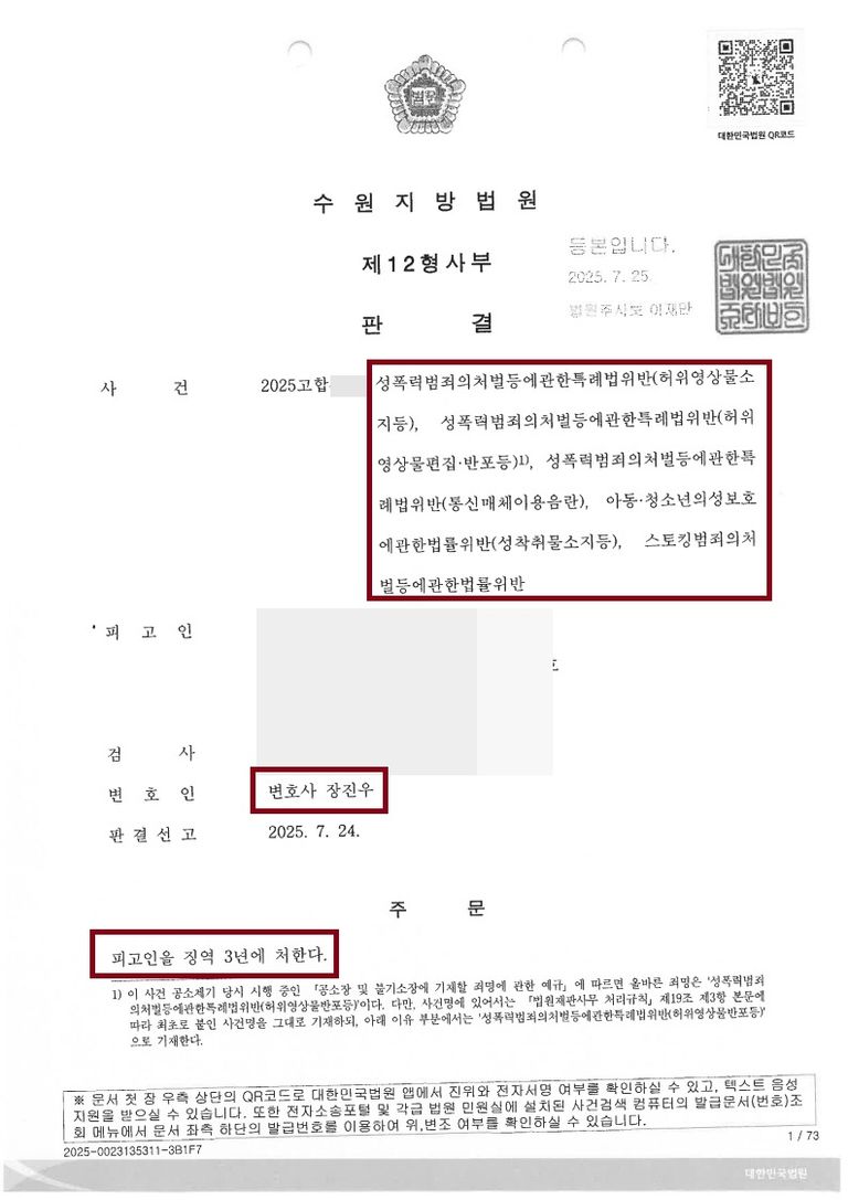 다. 피해자 얼굴과 나체 사진을 딥페이크 영상물로 제작하여 성인사이트에 게시하고, 피해자의 신상정보를 게시하여 허위영상물제작반포등 혐의,