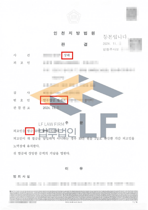 오늘은 일방적인 상해혐의로 재판을 받은 의뢰인이 벌금형으로 마무리 지은 사연에 대해 설명드리며 초동대처의 중요성도 함께 말씀드리고자 합니다.