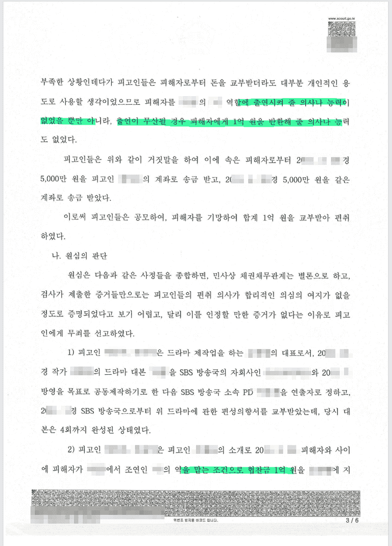 사기혐의로 피소된 사안에서 무죄를 선고받은 사례