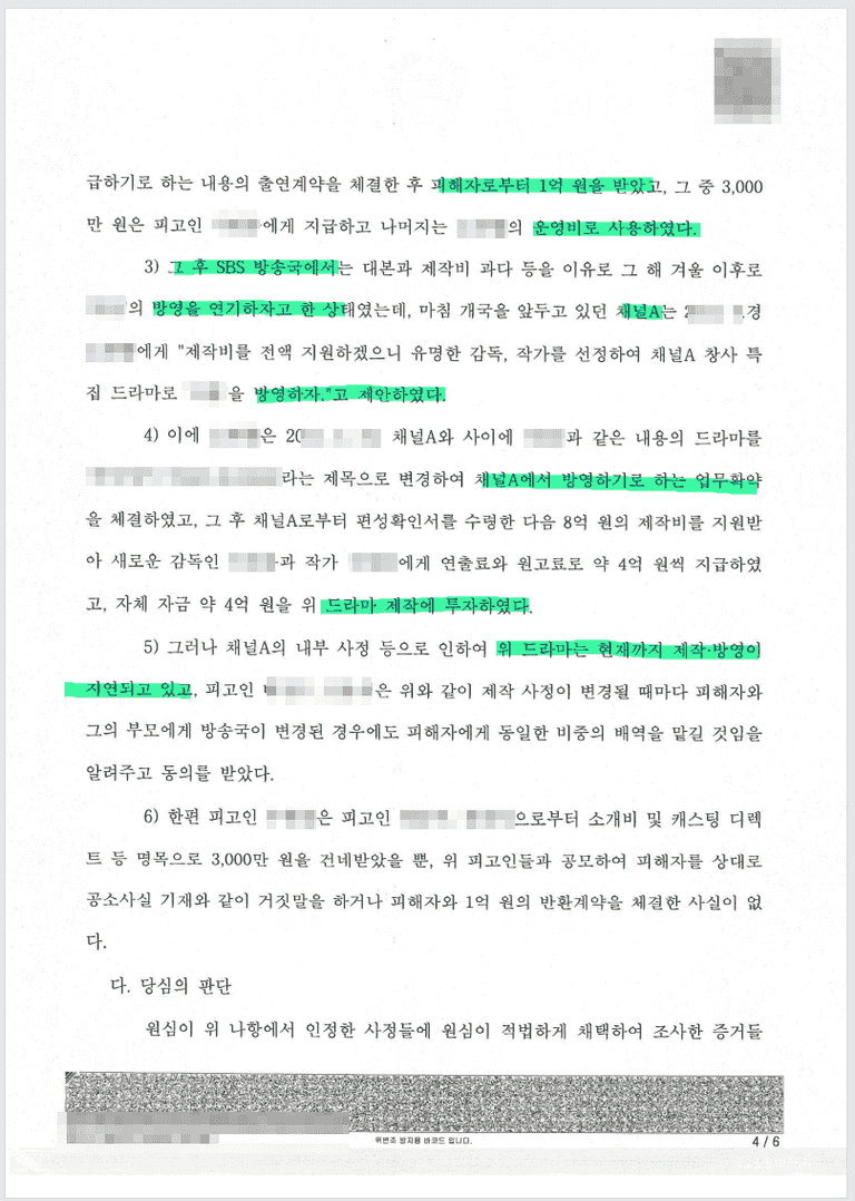 드라마 제작업체의 대표로서 특정 드라마에 특정 역으로 출연시켜 줄 것을 조건으로 1억원을 받아