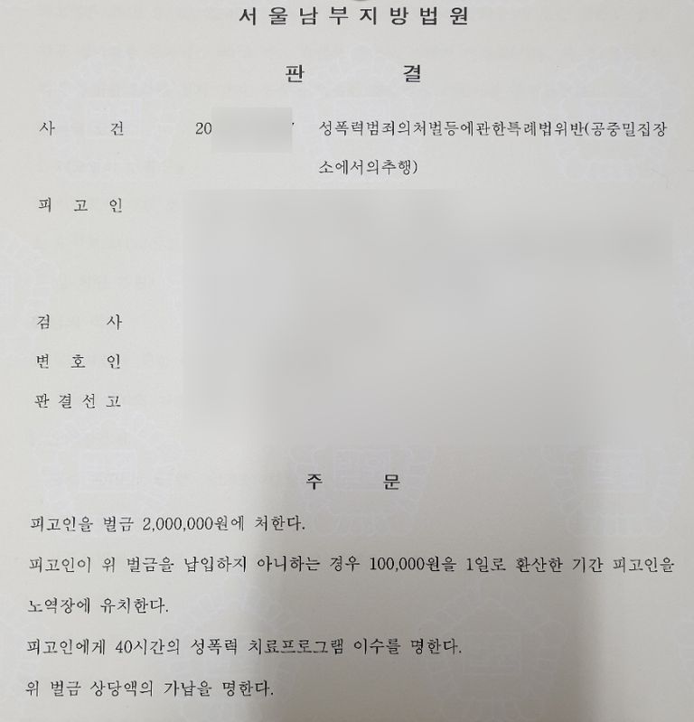 이 사건 가해자는 초범이고 자백을 하였고, 추행의 정도도 비교적 경미하였기 때문에 벌금 200만원이 선고되었습니다. 이렇듯 적용법조를 세세하게 파악하고 의뢰인에게 가장 유리한 방향으로 의견을 제시하는 것이 성범죄 변호사의 능력이라고 하겠습니다.
