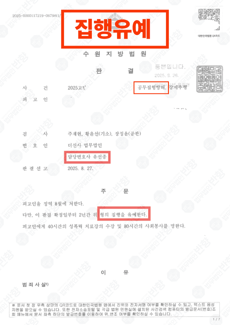 공무집행방해 집행유예 성공사례