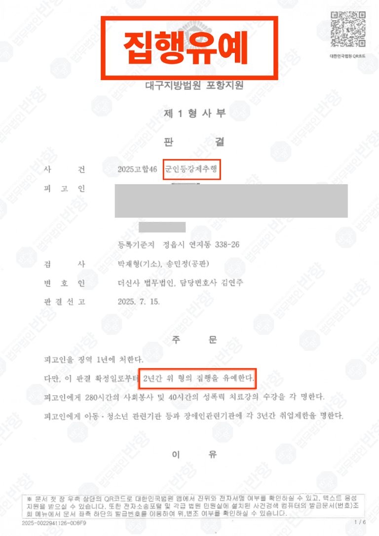 이에 따라 의뢰인은 군 교도소 수감 없이 전역이 가능했고,
