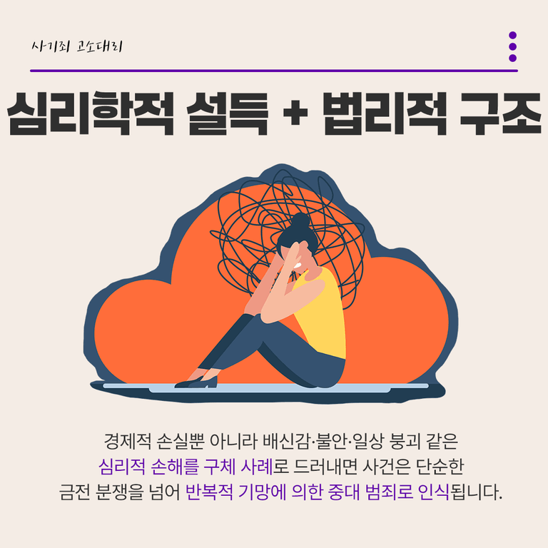 따라서 경제적 손실뿐 아니라 배신감·불안·일상 붕괴 같은 심리적 손해를 구체 사례로 드러내면 사건은