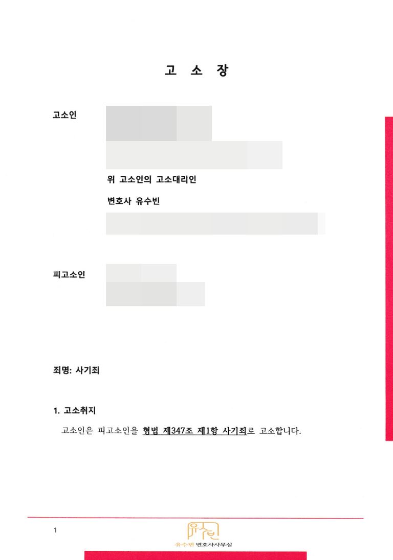 오늘은 제가 실제로 맡아서 진행했던 사기 사건 고소대리를 소개해 드리려고 합니다.