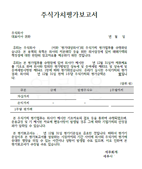 저도 특별현금화명령 신청 절차에서 #회계법인 에 주식가치평가보고서를 의뢰하여 아래와 같이 제출하였습니다.