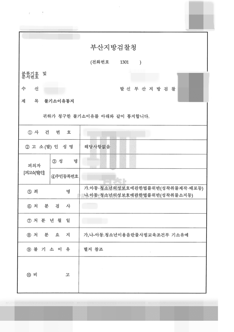 그 결과, 보호관찰소에서 실시하는 음란물사범 교육 프로그램 이수를 조건으로 '기소유예' 처분을 내렸습니다.