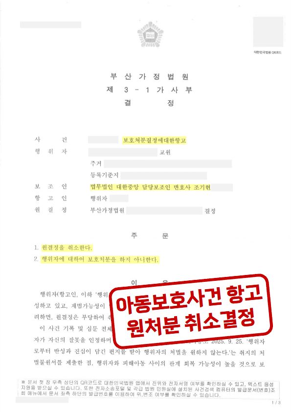 ![[⚡아동학대] 친아들 학대 공직자, 항고로 처분 취소 성공사례](/_next/image?url=https%3A%2F%2Fd2ai3ajp99ywjy.cloudfront.net%2Fuploads%2Ftitleimage%2Foriginal%2F5b890c666696eb4a246e021f-original.jpg&w=3840&q=75)