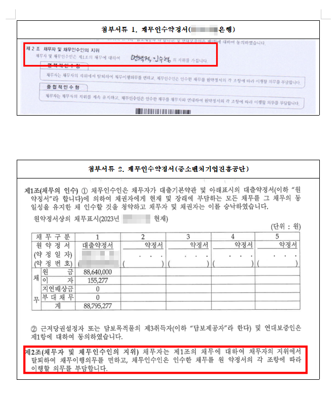 이때 채무인수를 위해서는 신용보증기금, 기술보증기금, 중소벤처기업진흥공단과 별도의 채무인수약정서를 체결해야 한다.