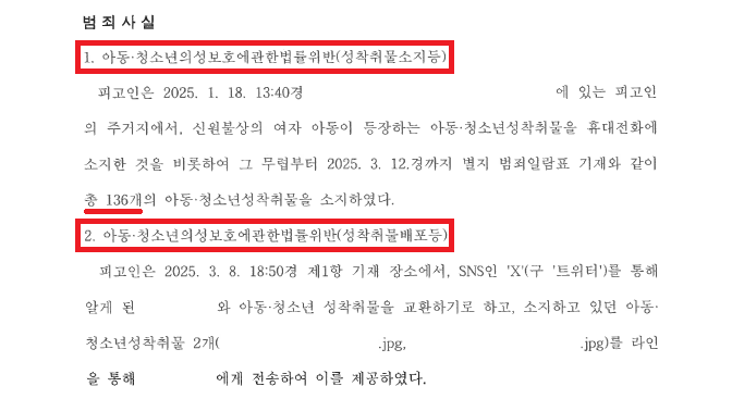 그럼에도 A씨는 2025. 1. 18.경 성착취물 총 136개를 다운로드받아 소지하다가, 2025. 3. 8.경 트위터에서 알게 된 B씨와 성착취물 2개를 교환하였습니다.