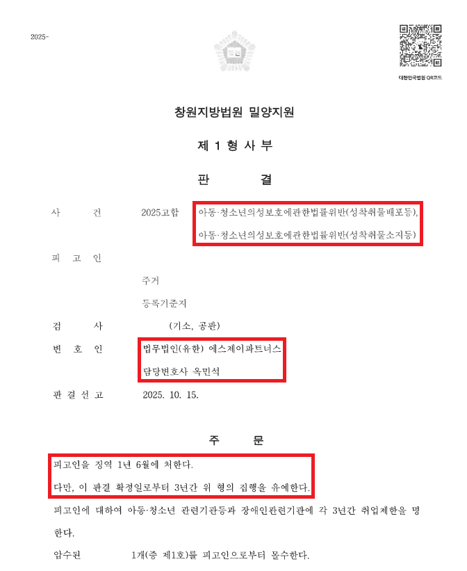 [관련 법령: 아동·청소년의 성보호에 관한 법률]