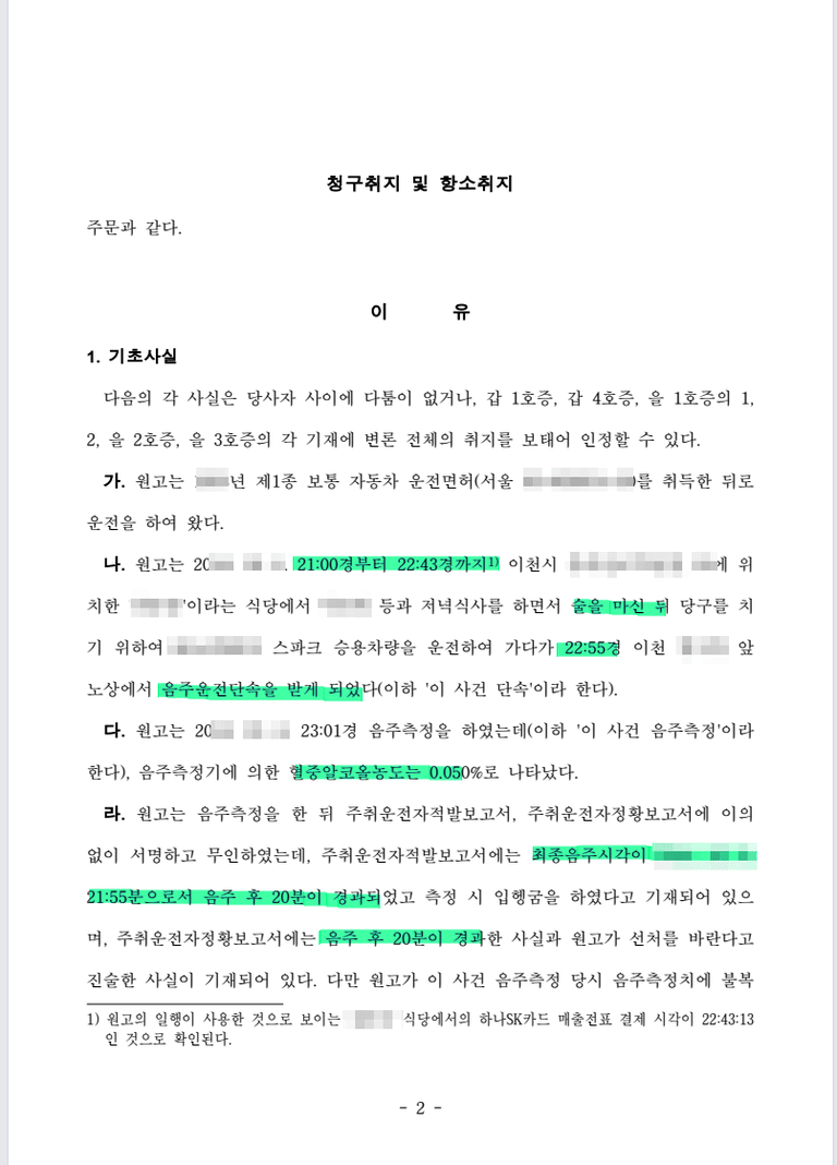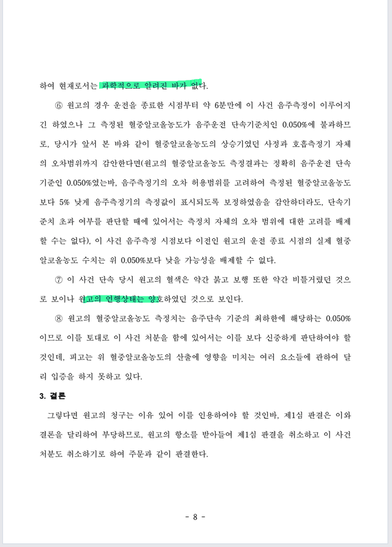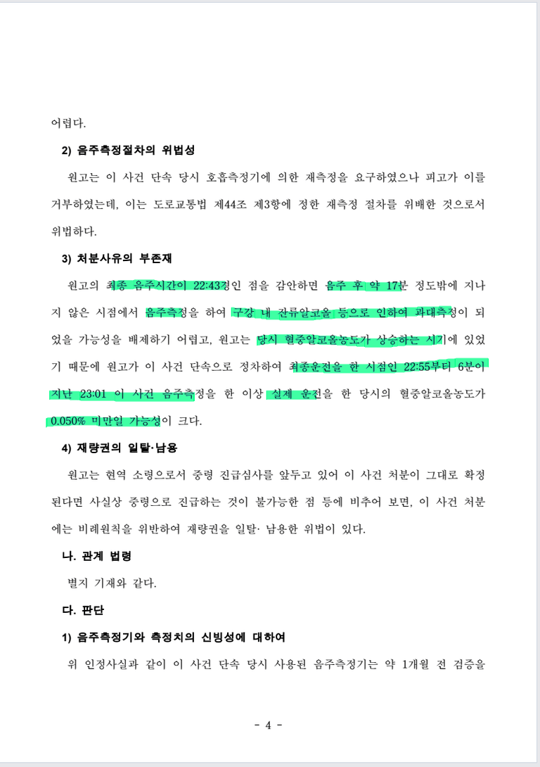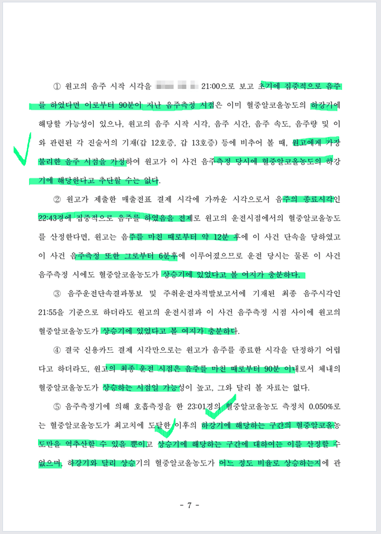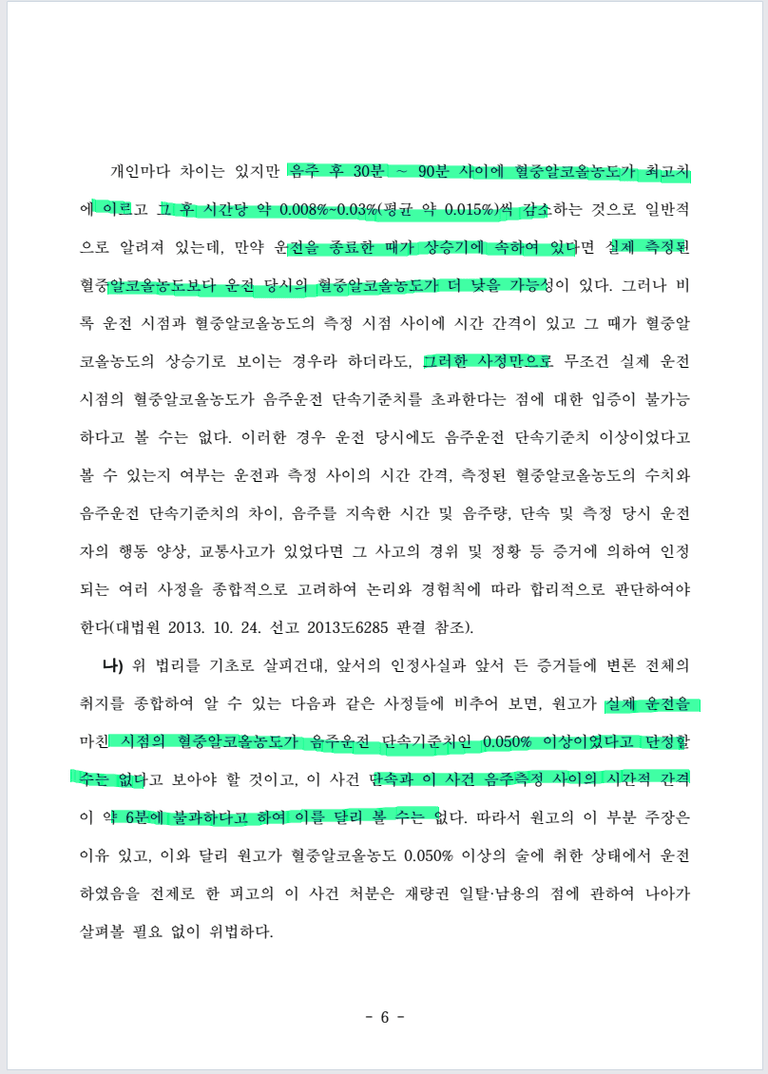 최종 음주시점과 단속시점, 측정시점 사이에 간극이 매우 짧아 실제 최종 운전 당시에는