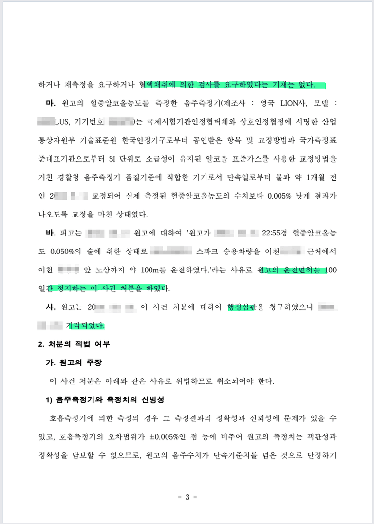 단속수치에 이르지 못하였음을 입증하여 면허정지를 취소시킨 사례
