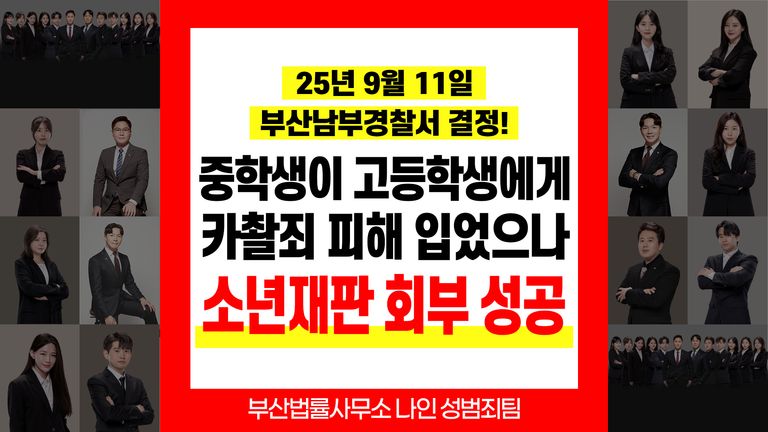 부산성범죄전문변호사 김현태변호사 중학생이 고등학생에게 카찰죄 피해 입었으나 소년재판 회부 성공사례