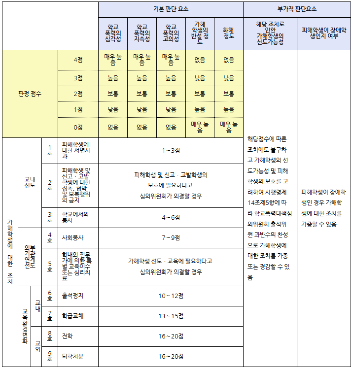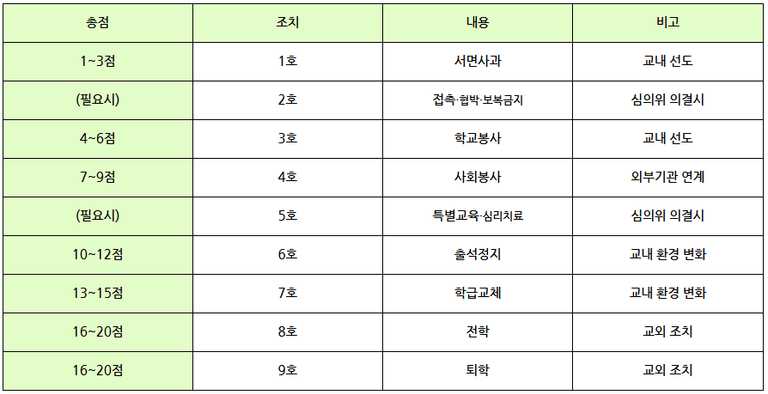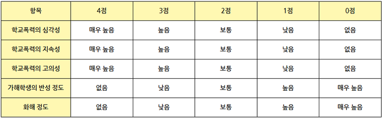 아래 점수표는 모든 학폭위에서 공통으로 적용되는 실질적인 기준입니다.