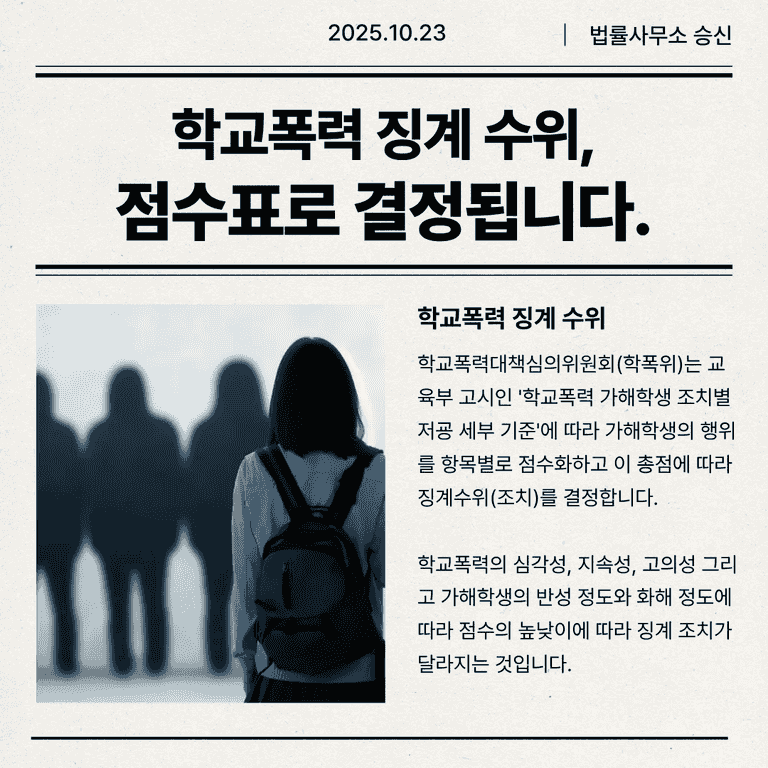 학교폭력 징계는 "점수"라는 냉정한 잣대로 정해집니다.