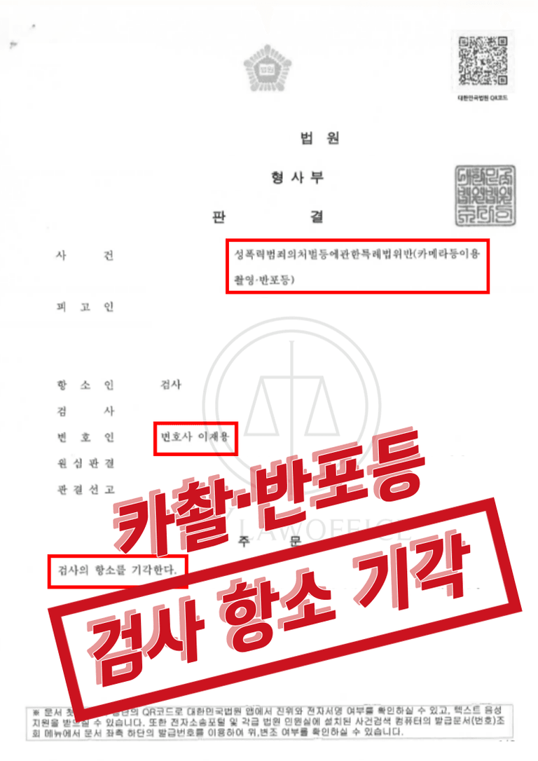[성공사례] 카메라등이용촬영·반포등 - 검사 항소 기각, 최종 집행유예