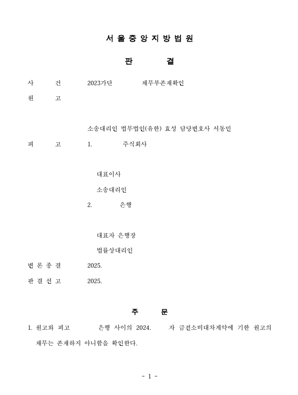 저는 즉각 피고 은행을 상대로 채무부존재확인의 소를 제기하여 가해자가 의뢰인의 명의를 도용/위조하여 피고 은행과 대출 계약을 체결하였으므로 이는 무효라는 점을 주장 입증하였고 법원은 원고 승소 판결을 선고하여 의뢰인은 대출금 채무에서 벗어났습니다.