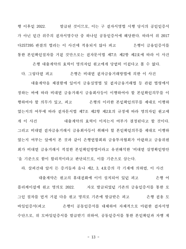 의뢰인은 가해자가 의뢰인의 핸드폰을 가지고 몰래 의뢰인 명의로 피고 은행으로부터 대출을 받아 이를 모두 소비하였고 피고 은행이 의뢰인에게 대출금 독촉을 하자 의뢰인은 저를 찾아오셨습니다.