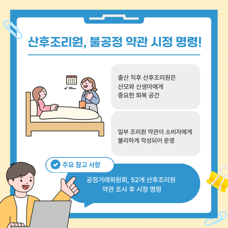 ![[약관#4]산후조리원들에 대한 불공정 약관 조항 시정명령 조치](/_next/image?url=https%3A%2F%2Fd2ai3ajp99ywjy.cloudfront.net%2Fuploads%2Ftitleimage%2Foriginal%2F5b890c896696eb4a246e023d-original.jpg&w=3840&q=75)