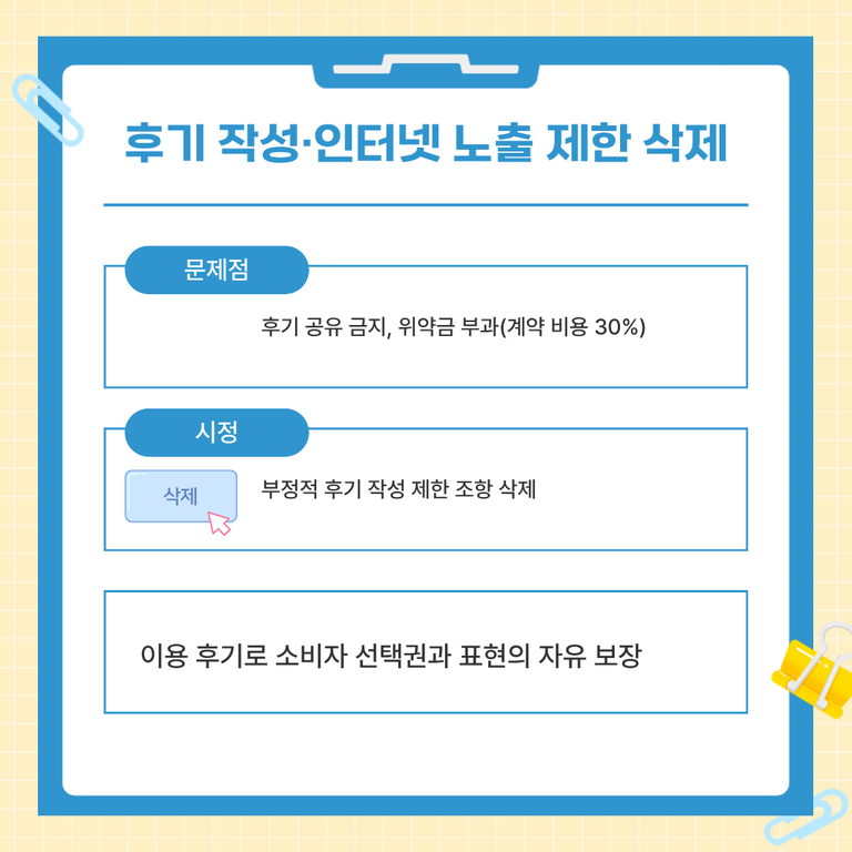 불공정 약관에 대하여 다음과 같이 시정하였습니다.