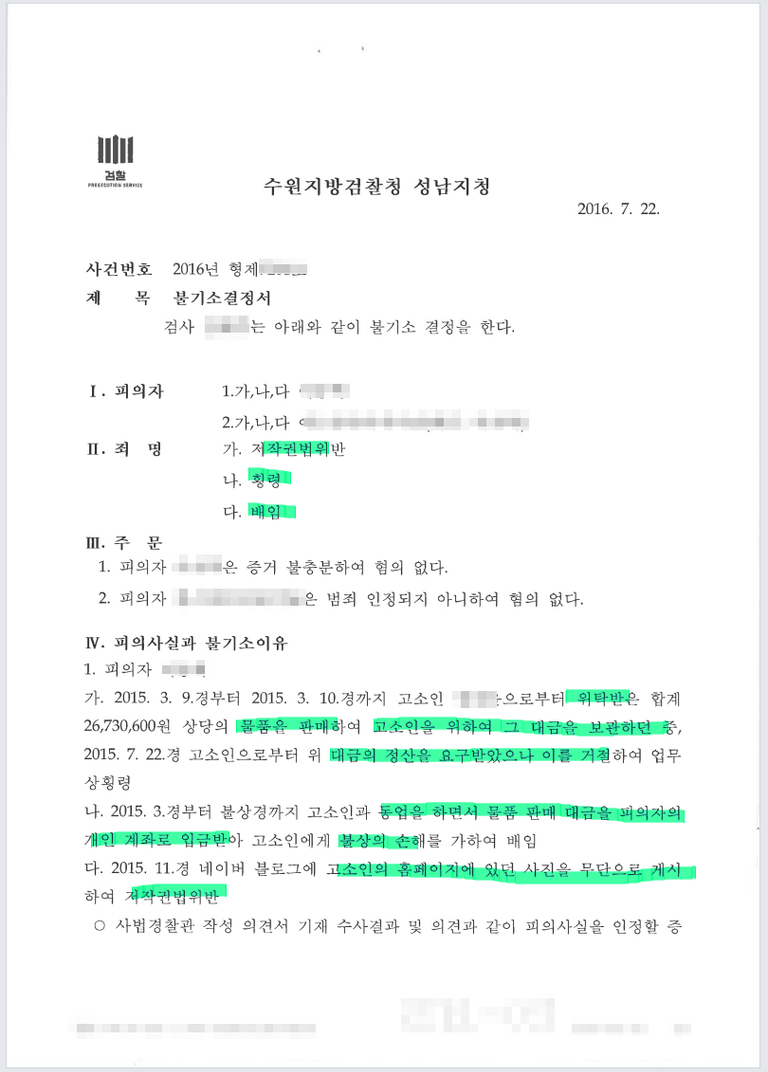 저작권법 위반 창작성 증거 제출치 않아 불기소 난 사례