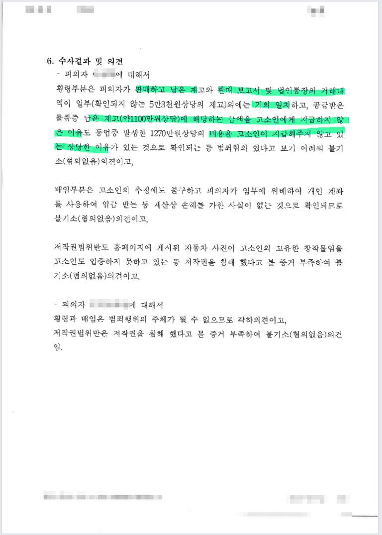횡령 등으로 고소하였으나 판매되지 않았거나 판매대금 모두 송금해 주었다는 이유로