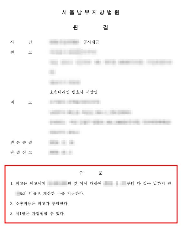 이에 따라 법원은 채무자에게 공사대금 전액과 지연손해금 지급을 명하는 판결을 내렸습니다.