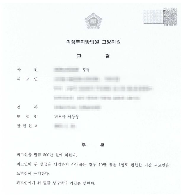 그 결과, 재판부는 벌금형의 선처를 결정하였고, 의뢰인은 실형을 면하며 사건을 원만하게 마무리할 수 있었습니다. 만약 피해자와의 합의가 이루어지지 않았다면, 동종 사례에서 실형이 선고되는 경우도 적지 않았을 것입니다. 따라서 이번 사건은 신속하고 세심한 합의대행 전략이 결정적인 역할을 한 성공사례라 할 수 있습니다.