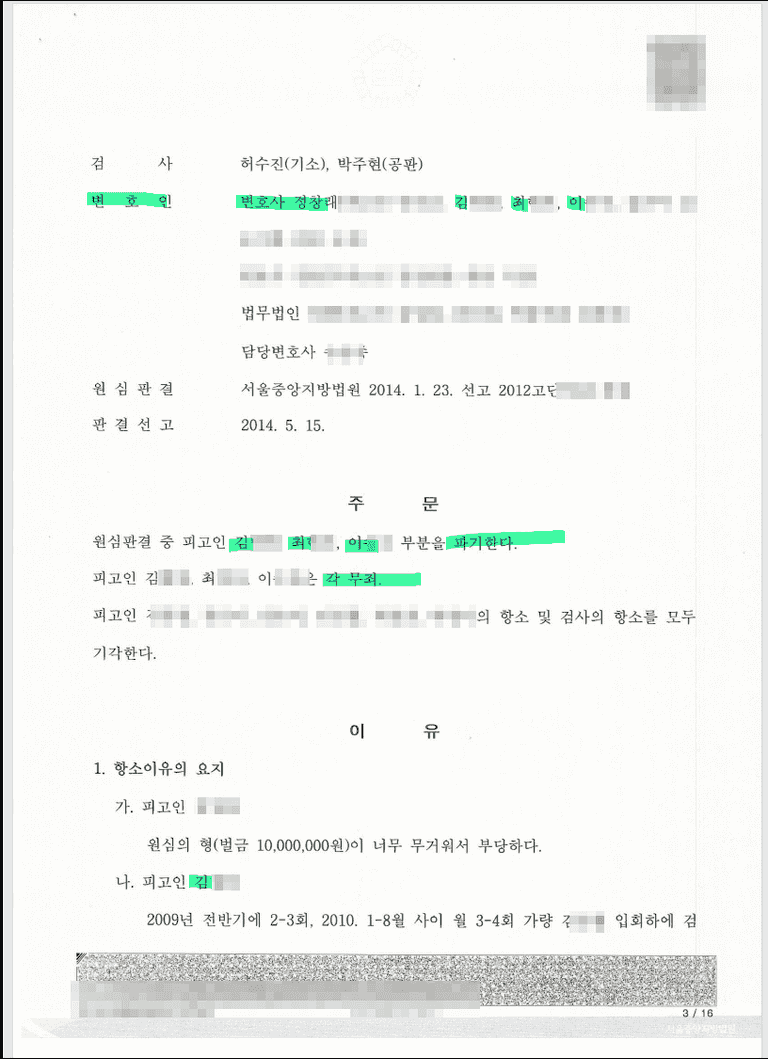 2심에서 무죄를 인정받은 사례
