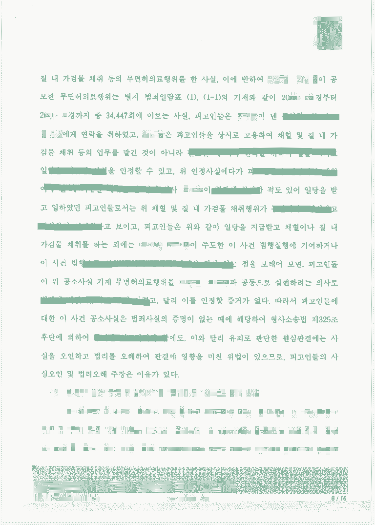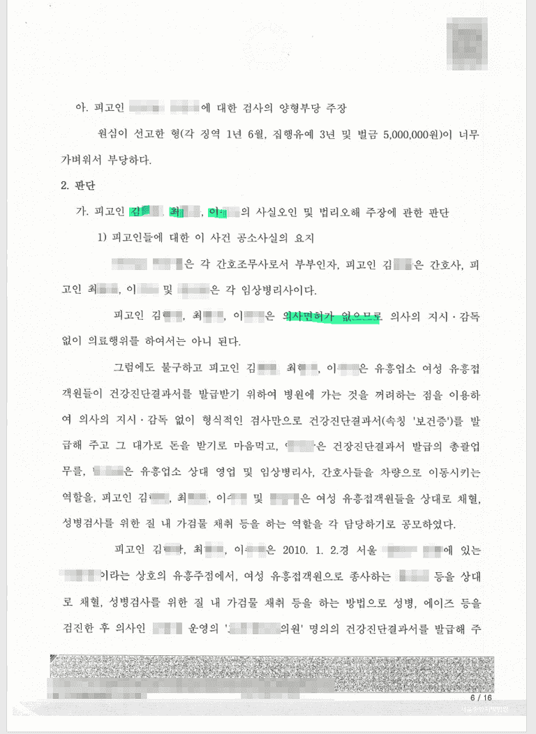 주된 범죄자로부터 구인공고를 보고 혈액체취 등 간호사일을 하였고