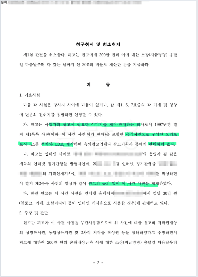 사진을 이용하였다 하더라도 시장가치 혹은 피고 영업에 큰 이익을 주지 않은 점
