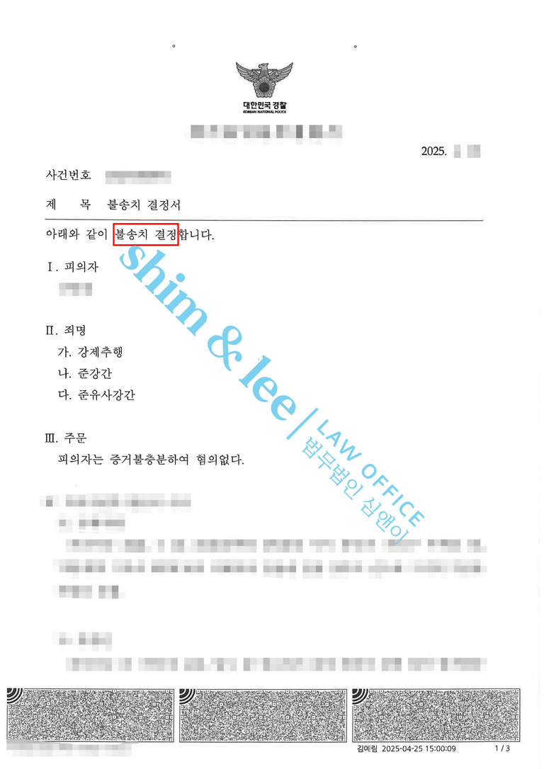 심앤이는 수사기관의 판단이 법리적•사실적으로 잘못되었다는 점을 하나씩 지적하며 불송치 결정에 대해 이의를 제기했습니다.