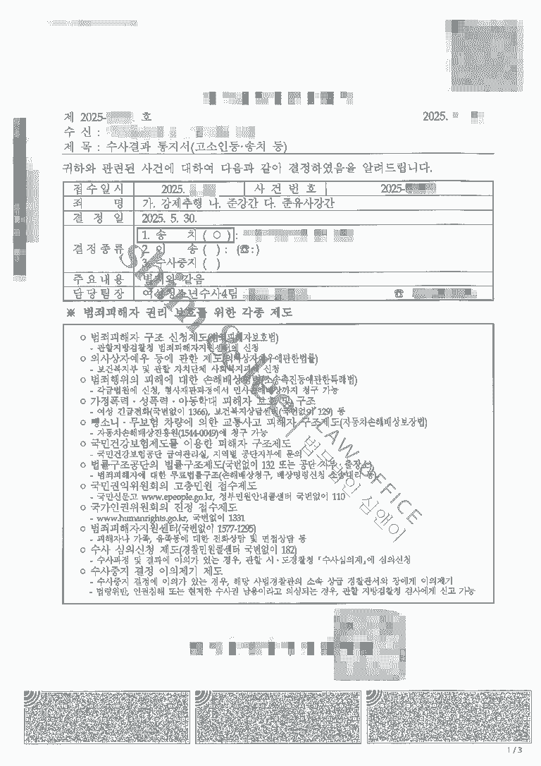 -경찰이 불송치 결정을 내릴 경우, 피해자는 검찰에 이의신청을 제기할 수 있습니다. 하지만 실제 이의신청이 받아들여지는 비율은 통상 10% 내외이기 때문에 단순한 진술 반복으로는 결과를 바꾸기 어렵습니다.