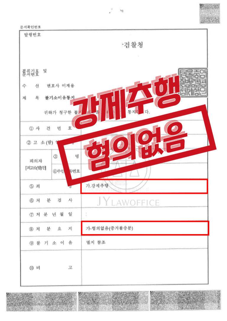 이와 같은 본 변호인의 조력에 따라, 의뢰인은 강제추행 혐의에서 혐의 없음의 처분을 받으며 사건을 무사히 종결할 수 있었습니다.