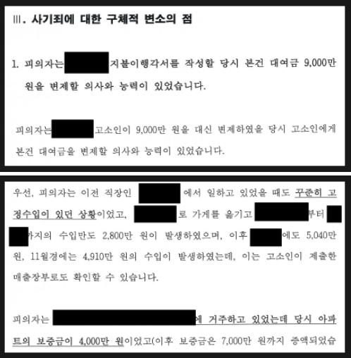 피의자는 9,000만 원을 빌릴 당시 변제의사·능력이 충분하였음(당시 매출·자산 자료 소명)