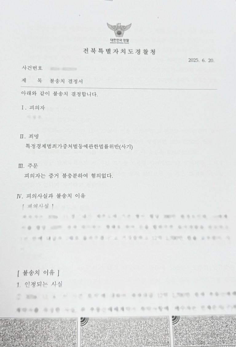 위와 같은 효율적이고 전략적인 대응덕분에 의뢰인은 경찰 단계에서 사건을 종결하는 불송치(무혐의) 처분을 받아낼 수 있었습니다 !!
