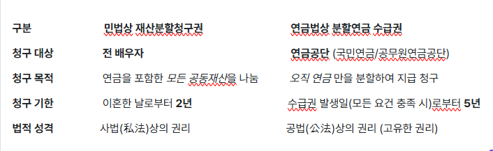 이혼 시 연금 분할을 이해하는 첫걸음은 이 두 가지 권리가 전혀 다르다는 것을 아는 것입니다. 많은 분이 이 차이를 몰라 권리를 잃습니다.