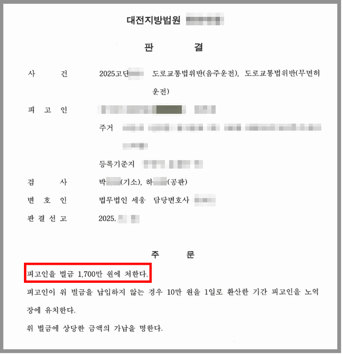 음주 상태로 인명피해가 있는 사고를 내는 경우에는 초범이라도 징역형의 집행유예가 선고되는 경우가 많은데, Y는 지난 사건에서 벌금형의 선처를 받았습니다. 그런데 불과 2년 정도 밖에 지나지 않은 시점에서 무면허 상태로 또 다시 음주운전 사고를 냈고, 혈중알코올농도도 아주 높았기 때문에 징역형의 실형이 선고될 가능성도 배제할 수 없었습니다.
