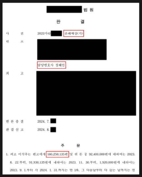 2. 정혜인 변호사 조력 ▶ 피고 불출석 사건, 체계적 입증 전략으로 승소