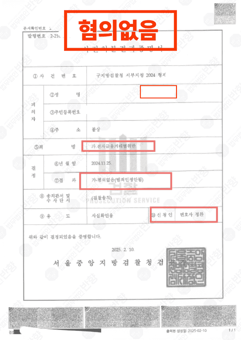 상황대처법경찰로부터 출석 요구를 받은 경우즉시 변호사 상담을 받아 진술 방향 준비계좌가 보이스피싱에 이용된 경우신속히 신고하고 거래 정지 요청피해자에게 연락이 온 경우임의로 연락하지 말고 변호사를 통해 대응자신이 피해자인 경우금융감독원(1332), 경찰청(112) 신고 필수
