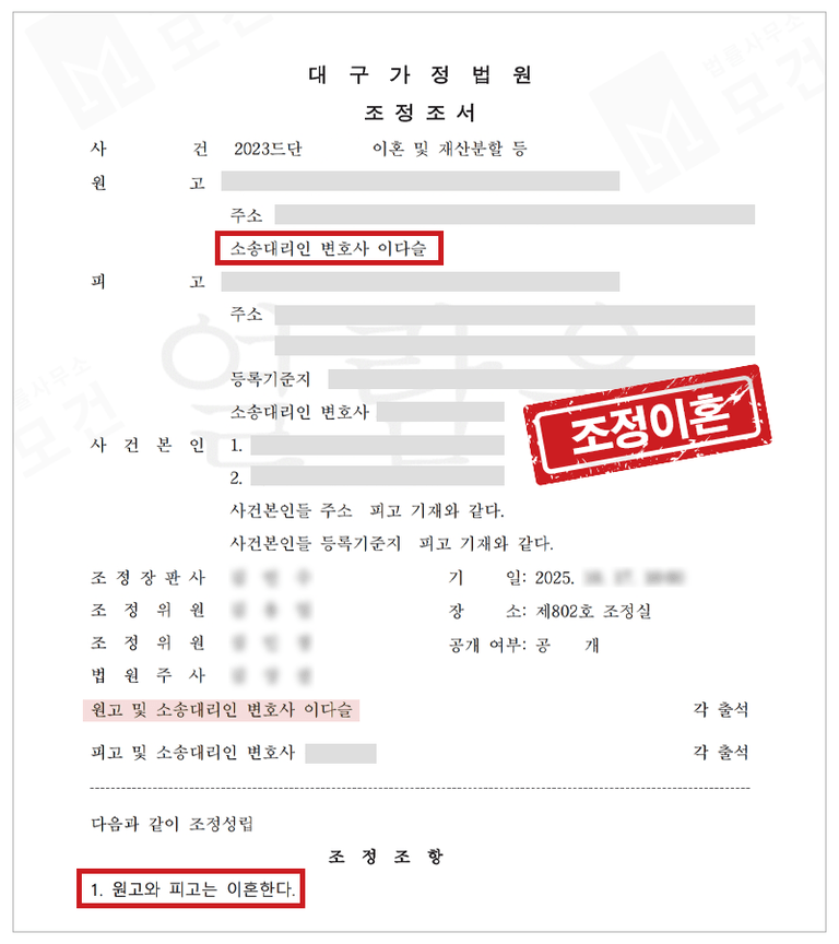 조정이혼 성공한 사례