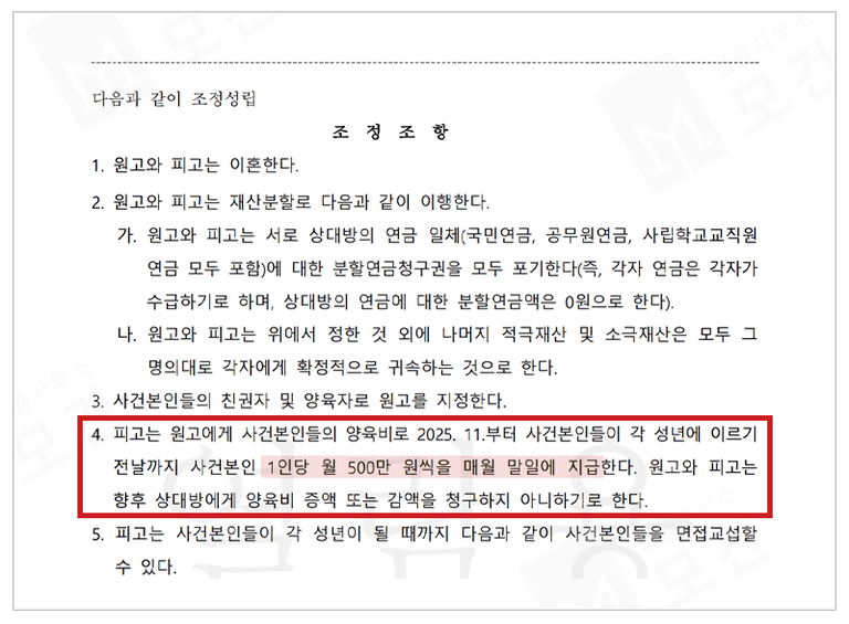 자녀 1인당 500만원씩→ 월 1,000만원 양육비 인정