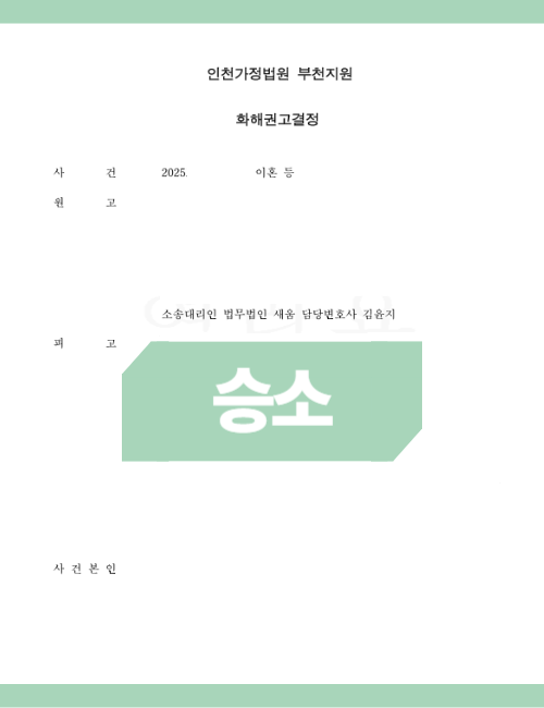 의뢰인 A씨는 배우자 B씨의 부정행위로 인해서 결국 이혼을 결심하고 법무법인 새움을 찾아오셨습니다. 이에 B씨에 대한 이혼청구 및 B씨와 부정행위 상대인 C씨를 공동피고로 하여 손해배상청구를 함께 진행하게 되었습니다.